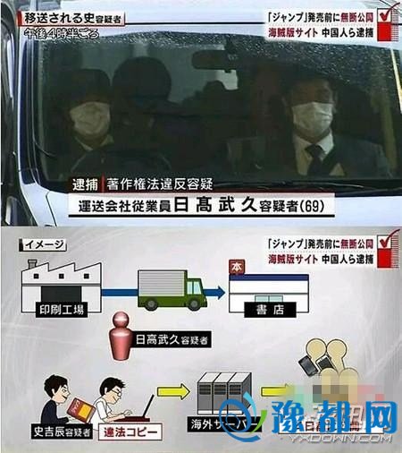 被捕的三名中国人涉嫌于10月29日,在没有得到授权的情况下,把刊登在11月2日发售的《周刊少年JUMP》上的《海贼王》最新一集,刊登在盗版网站“mangapanda”上。