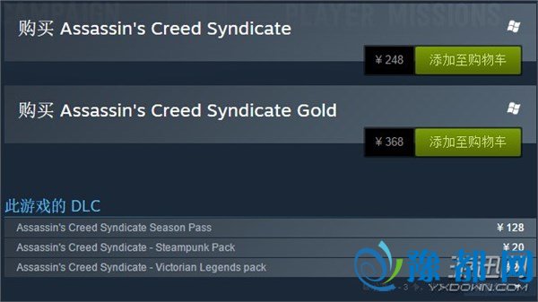 另外《刺客信条:枭雄》黄金版国区价格是368元,包括主体游戏和游戏季票。另外游戏季票也支持单独购买,售价128元,不过没黄金版便宜一些。