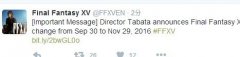 在2016德国科隆游戏展上,史克威尔艾尼克斯新放出一段长达1小时的《最终幻想15》新视频演示,本作已经从9月20日延期至11月29日发布,游戏将登陆索尼PS4和微软Xbox One主机。