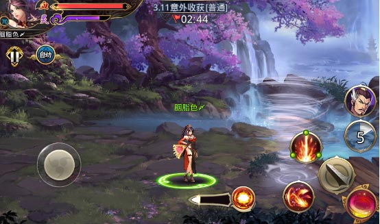 点评:扶风技能是朝向前方挂起一阵飓风,对对方在一条直线上的敌人造成伤害并附带击退效果。在面对敌人一大波敌人进攻时,可以使用该技能击退敌方。