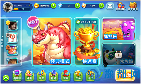 当然,相比于其他捕鱼类游戏单一的捕鱼赚钱模式,《捕鱼达人3D》中则是包含了经典模式、快速赛、抓抓乐与水族箱四个版块,经典模式与大众的捕鱼游戏模式类似,而快速赛则是将一款原本纯属娱乐打发时间的休闲游戏,转而变成了富有竞技意味的比赛,更加带动玩家的兴趣。大家可以在竞技赛中与其他玩家进行竞争,几位玩家同场竞技,游戏更富趣味。至于抓抓乐,则是以趣味小游戏为主的闯关模式,可以让玩家们在感到乏味时尝试不同的口味,放松心情。
