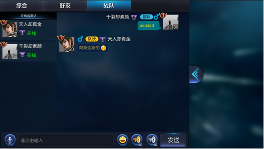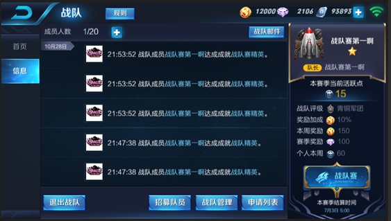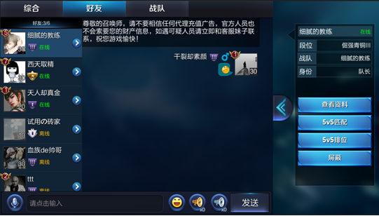 战队频道,增加了战队成员列表,战队队友的状态显示更加清晰,战队管理者铭牌展示。
