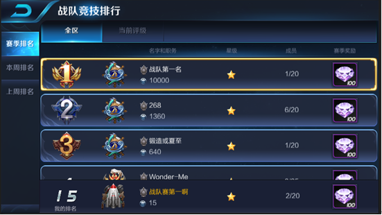 我们对战队排行界面做了调整,新增了战队赛积分的排行榜,并对原有排行榜的信息排列做了优化;