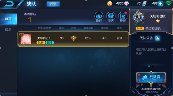 l 新增战队公告,只有队长和副队长可以编辑,用于向队员传达信息。