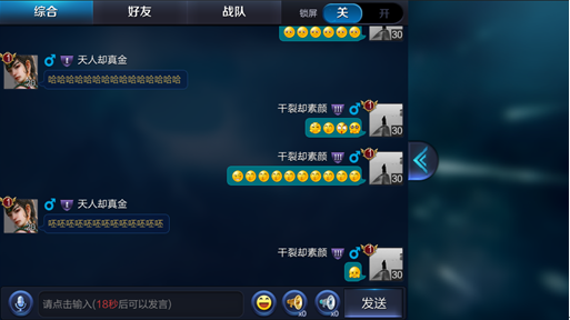 综合频道,增加锁屏功能和性别、段位图标,让召唤师可以更加便利的浏览聊天消息;