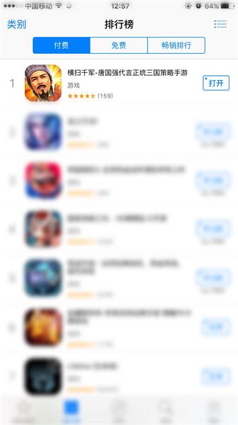 在2015年,iOS手游登录付费榜的时候,似乎花钱刷榜是一件各大厂商心照不宣的手段,然而《横扫千军》在登录付费榜的时候,却选择了不刷榜。这看似死要面子活受罪的行为,却意外受到了极好的效果,原因就在于,在《横扫千军》上线的11月这一整个月期间,苹果对付费榜刷榜进行了严厉的整治,所有刷榜的游戏一律被清榜请出排行。于是,唯一不刷榜的《横扫千军》反而成了付费榜的寡头。而当其他游戏费劲力气再次刷到和《横扫千军》差不多位置的时候,苹果再次清榜了,于是,在一月三清榜的“奇迹”下,《横扫千军》登陆付费榜的这一个月内,都占据了首屏的位置,更有近1/3的时间,坐着第一的宝座,为其赢得了良好的开端。上线一年来,《横扫千军》有整整217天位于各种排行榜的高位,让更多人关注到了这款初看貌不惊人的游戏。