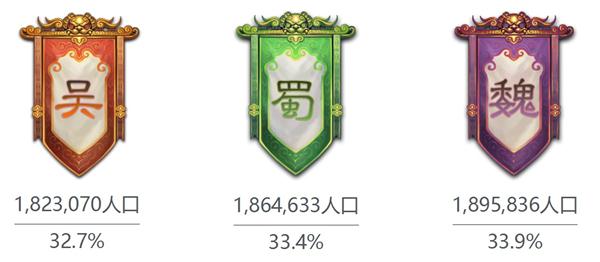 时至今日,《横扫千军》三国总人口5,583,539:吴国(32.7%)1,823,070人,蜀国(33.4%)1,864,633人,魏国(33.9%)1,895,836人;每日还有XX新增人口。《横扫千军》很好地通过适配奖励来平衡游戏内各国玩家的数量。然后通过国战、竞技场等内容挑起玩家的矛盾和竞争心,让玩家有持续争斗的理由和目标,也造就了《横扫千军》长盛不衰的玩家热潮。时至今日,游戏内共进行了11,313场国战,参与国战的玩家人数已近30亿人次。