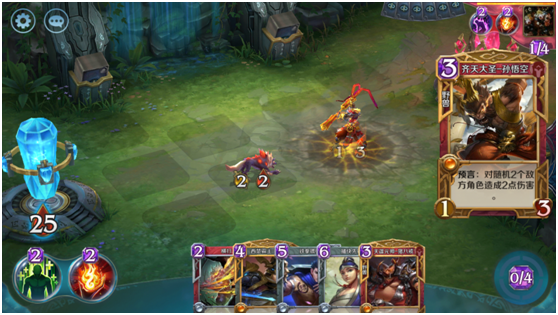游戏中设计有英雄与随从两种单位,普通的随从自然是有着不同的费用以及不同的技能特效,而不同于随从的英雄设计不仅在能力上高于随从,更特别之处在于英雄单位死亡后会如同亡语一般的重新回到你的牌库中并且提升其能力值,也就是说游戏的核心战斗方式就是围绕着英雄单位的反复升级战斗来提升游戏的进程。