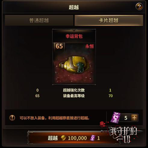 永恒饰品进阶和突破是最新的战力升级手段!玩家可使用饰品进阶劵,直接将饰品进阶到更高一级,例如英雄至传说。而到达永恒品质的饰品,使用同种类永恒品质饰品和一定金币,即可进行超越,超越后的装备将会有增加强化上限等特殊效果。