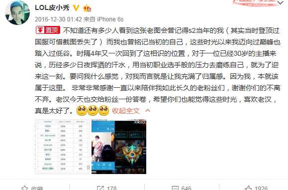 乃至于如今到30岁,为了保持实力我甚至每天除了直播6小时以外还会给自己安排额外8小时的时间训练自己技术。丝毫不比打职业时候轻松。
