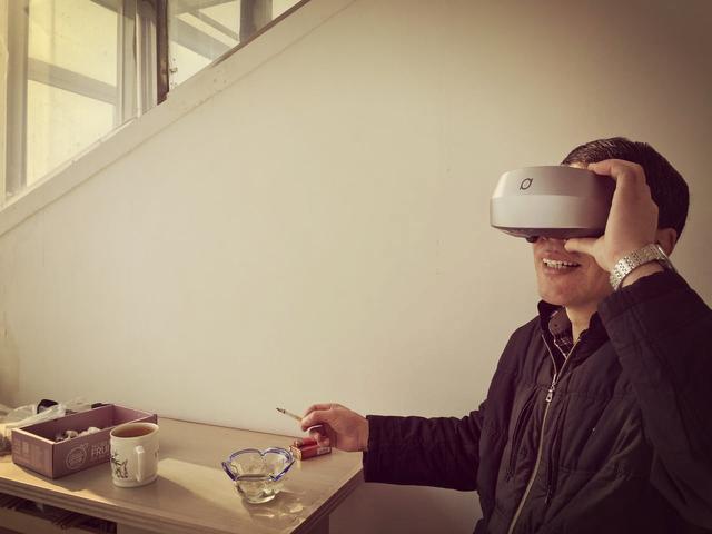 ▲网友豹豹:老爸在天台上边晒太阳边玩VR,惬意得不要不要的。哈哈哈!