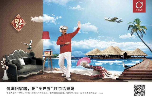 今年春节,大朋更是将VR大礼包送进了全国13个城市的25个机场和高铁站,让回家路上的人们能为家人带一份崭新的心意,带父母看看外面的美好世界。