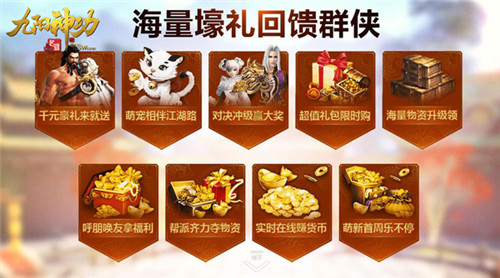 此次,《九阳神功:起源》还为每个玩家量身定制了“千元豪礼来就送”、“对决冲级赢大奖”等九大独享福利,助你完美起步!3月2日-3月8日iOS首发活动期间,玩家每日在线达到一定要求,即可轻松获得物资奖励。当在线时长达到60分钟、90分钟和120分钟时,大量碎金、冲星石等价值千元的豪礼就是你的!喜欢冲级的玩家一定不能错过“海量物资升级领”活动,玩家在提升角色等级的同时,丰富的道具奖励也随之而来。活动结束时,等级排行榜前三名的侠客还可以获得海量黄金、宠物·黄金藏宝图、声望令等丰厚奖励!与此同时,玩家参与“萌宠相伴江湖路”活动,首充任意面值即可获得三星紫宠“赤瞳”及“传家宝武器”等稀缺典藏装备。限时活动页面还会提供超值折扣礼包供玩家选择,活动期间,玩家每日充值对应的金额,即可获得相应额度的碎金返利!