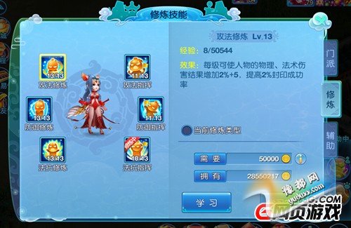 作为门派弟子,首先必须点满的当然是门派技能啦!技能越高,所造成的伤害(辅助加成、封印)越高。而且部门门派技能还可以提供属性加成呢!