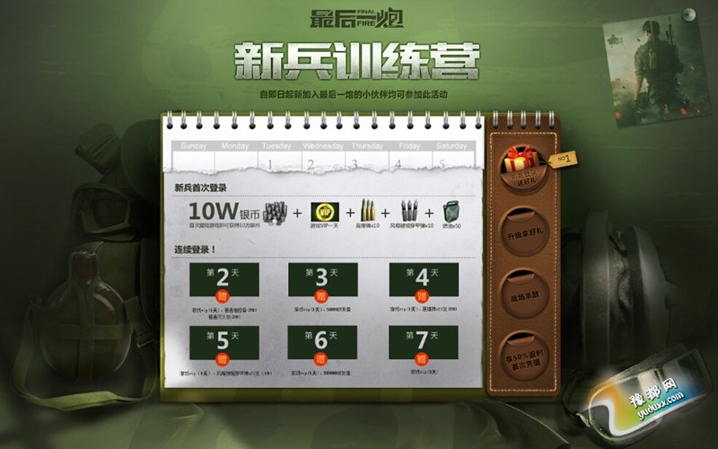 新兵第5日登录享受:游戏vip*1天、风帽被帽穿甲弹(21发)*10