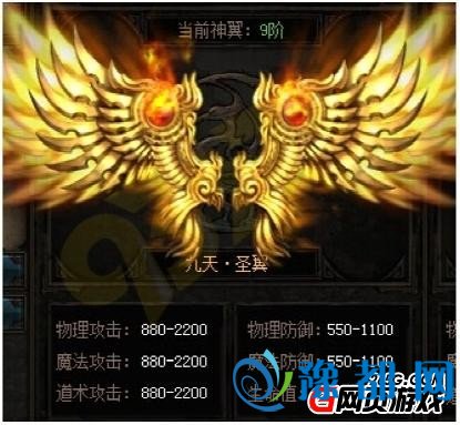 神翼,和坐骑一样,不仅拥有炫酷的外观,还可以增加物理攻击、魔法攻击、生命值等。神翼一共分成9级,神翼的等级越高,外观越华丽,可提供的属性也就越多。