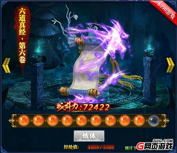 对于六道的参悟当然少不了六道真经,这个对于炼体有着十分重要的心法一共就九卷,每一卷都有十个等级,当十个等级全部点亮之后就可以升级了,而点亮这些则需要大量的经纶值,只需要完成每日的任务就可以大量的获取哦,绝世心法不可错过哦。