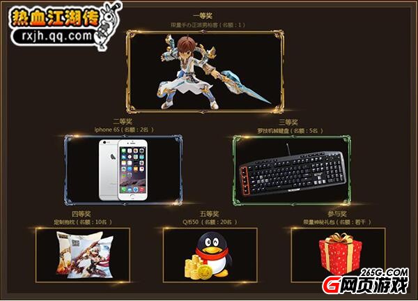 腾讯《热血江湖传》一周年庆开启在即。十年热血,一往情深。本次周年庆典以“十年热血、一往情深”为主题,贯穿回顾这一年来《热血江湖传》的多次蜕变,并且用感恩回馈的方式答谢所有玩家一年来的支持与厚爱。在媒体活动页面参与活动,可以领取连续七日不同庆典礼包。为自己心爱的角色投票,可有机会获得抽奖机会,限量手办、iPhone6s、机械键盘等超值大礼触手可得!
