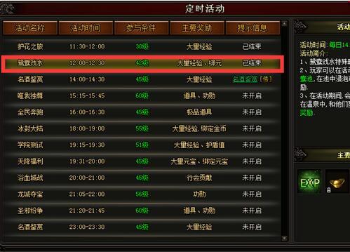 在923yx《红名传说》中只要等级达到42级,就可以和小伙伴们一起戏水啦!而且这里是没有时间限制的哦!不过,想要更多经验的小伙伴就要注意12:00-12:30这个时间段啦,在这个时间段里大家可以获得双倍奖励哦!