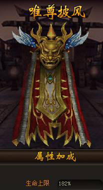 披风具有一定成长的空间,披风等级的提升会给角色带来额外的生命值加成。披风等级越高,加成的额外生命值越多,给角色带来的帮助非常大,生命值的多少是决定角色生死的关键。