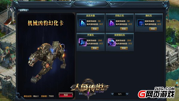 国家商店是一个专为高级玩家开放的交易平台,这里并不是有钱就说了算,玩家对国家的贡献度越高,就可以兑换到这些作战必备的资源。目前国家商店中可以兑换的材料有远古水晶、烈焰之石、强化石、升星石和坐骑强化石,每天限量兑换,有需求的朋友们不妨到这里看看,不用花钱,也是蛮超值的。