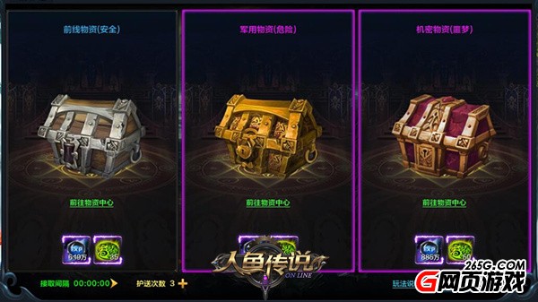 在古代,物资护送需要镖师才有资格押运,在这里同样也有等级要求。玩家需要达到65级才能开启物资护送,每天可完成3次物资护送。任务分为噩梦、危险、安全三种品质。值得注意的是,在押送物资的过程中不再是与游戏NPC之间的PK,也可能受到其他玩家的攻击,若物资被其他玩家摧毁,则只能获得80%的奖励。