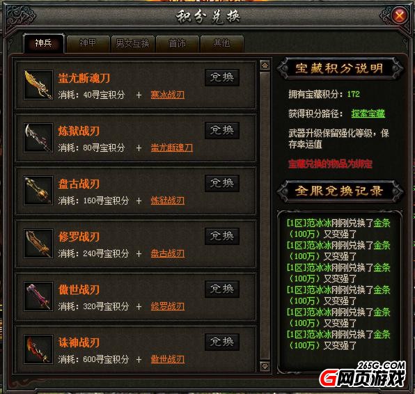 当玩家寻宝后还可获得宝藏积分,玩家点击积分兑换可使用积分兑换