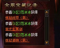 当玩家获得极品装备时将显示在全服宝藏记录中,全服可见