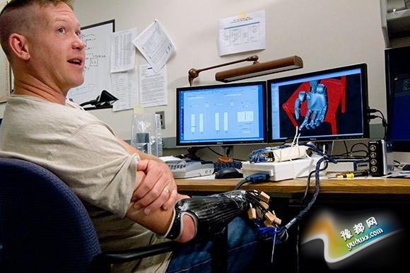 在DARPA的实验室中,一名伤残的退役军人在测试机械手。DARPA在神经工程领域的长期研究,不仅影响了《COD12》的开发,还成为后者提供了许多第一手的设定资料