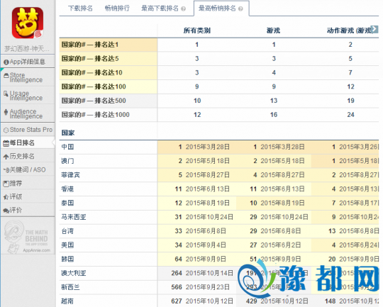 《梦幻西游》全球市场畅销榜最高排名