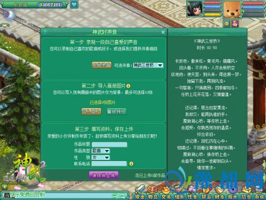 《神武好声音活动开启 全民翻唱三世桥》由河南新闻网-豫都网提供,转载请注明出处:http://game.yuduxx.com/xyzx/585801.html,谢谢合作!