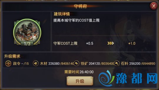 《率土之滨》 “大国科技”将为策略热爱者带来精彩纷呈的个人展示,个人科技将增加女墙和守将府,女墙使城墙地块耐久度上限增加,守将府提高守将可配COST。另外,游戏还将推出一系列领地、设施和建造的强化科技,包括领地防御、警戒所强化、瞭望塔等,主城的防御机制将更加牢不可破,使策略热爱者可率领百万兵远征而无后顾之忧。