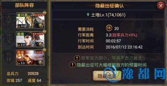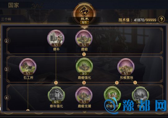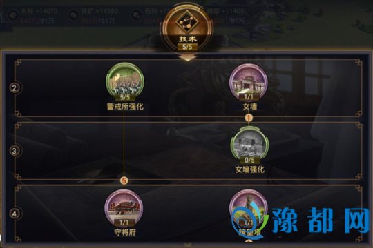 《率土之滨》“大国科技”将更加活用地图元素,国家将可以在高级石料地、木材地、粮食地和铁矿地分别建造石工所、斥候营地、鹿砦和大型要塞,使国家运用各种军事战略更加灵活。比如斥候营地具有要塞和隐蔽出征的功能,使奇袭队能来去如风,实现闪电斩首行动;大型要塞耐久度更高,通过强化可以建造城垛,使其中待命和驻守的部队受到的伤害降低,更坚固前线阵营。各大建筑均有妙用,且看吾王地缘战略如何抉择。