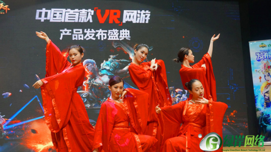 VR网游《权御天下》新品发布会在婀娜多姿的古风舞蹈表演中拉开序幕。一群气质美女跳完古风舞蹈后,立马转换为动感的现代舞蹈,多变的舞蹈穿插吸引了大家的所有目光。在现场主持人的宣布之下,全球首款VR网游发布盛典隆重开场。2016年被称作为是VR元年,绿岸网络已经提早布局,积极投入研发,聘请国内外专家成立技术顾问团,采用Oculus设备的尖端科技,开发出全球首款VR网游《权御天下》,并在Chinajoy展会向公众首发,推向市场。
