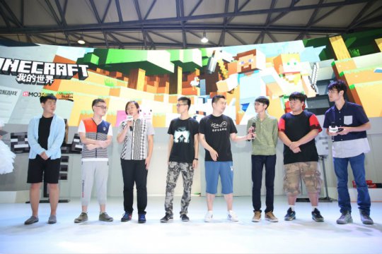 CJ第三日,国内超知名Minecraft主播、原创内容视频“方块学园”系列创始人籽岷亲临Minecraft展台。在籽岷出现的一刹那,熟悉他的小伙伴们立刻欢呼了起来,原本便挤满人群的舞台前更是有大波观众涌来,将展台围了个水泄不通。这个平时只能在视频节目里听他的解说享受他带给大家的快乐的超知名主播,今天真正的现身在展台之上。是真人的籽岷大大哦!顿时可以理解为什么玩家们突然就狂热起来啦!