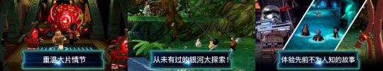游 戏是以乐高的形式表现原作中经典的场景和角色,并追随了电影版的剧情,同时又加入了大量的幽默元素。这也是一套全新的游戏机制,特别是增加多远建造的系 统。游戏中还有众多的战斗猫,包括太空站、战斗机狗斗以及竞技的战斗模式。让玩家们一起来探索“绝地归来”以及“原力觉醒”之间的故事。